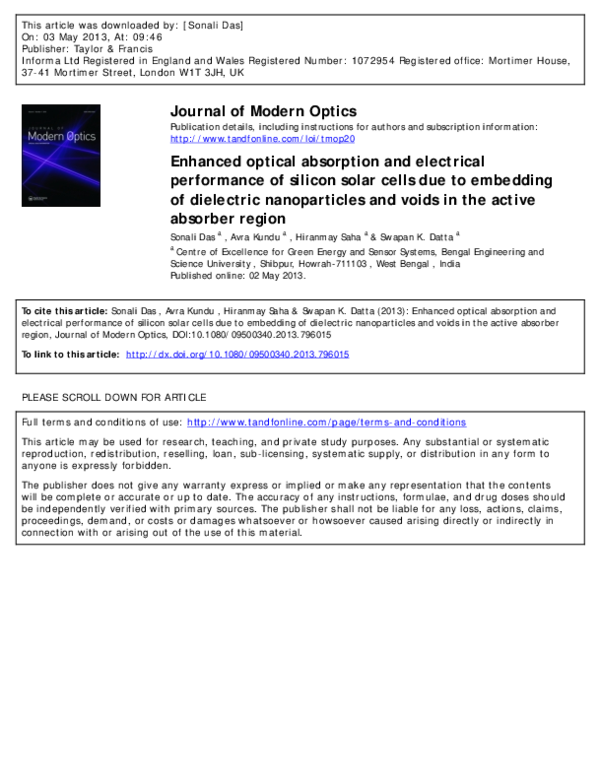 Pdf Enhanced Optical Absorption And Electrical Performance Of Silicon Solar Cells Due To Embedding Of Dielectric Nanoparticles And Voids In The Active Absorber Region Swapan Kumar Datta Academia Edu - Basic electrical full form name, hindi, english new video 2019 | all electrical materials full formhse technical.