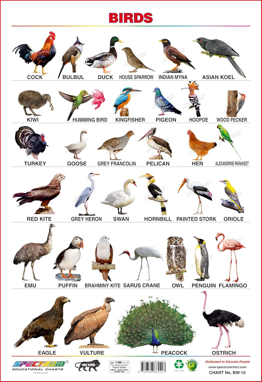 Spectrum Educational Large Wall Charts Set Of 3 Hindi Varnamala Domestic Animals Birds Amazon In Office Products - Birds name in hindi and english with picture.